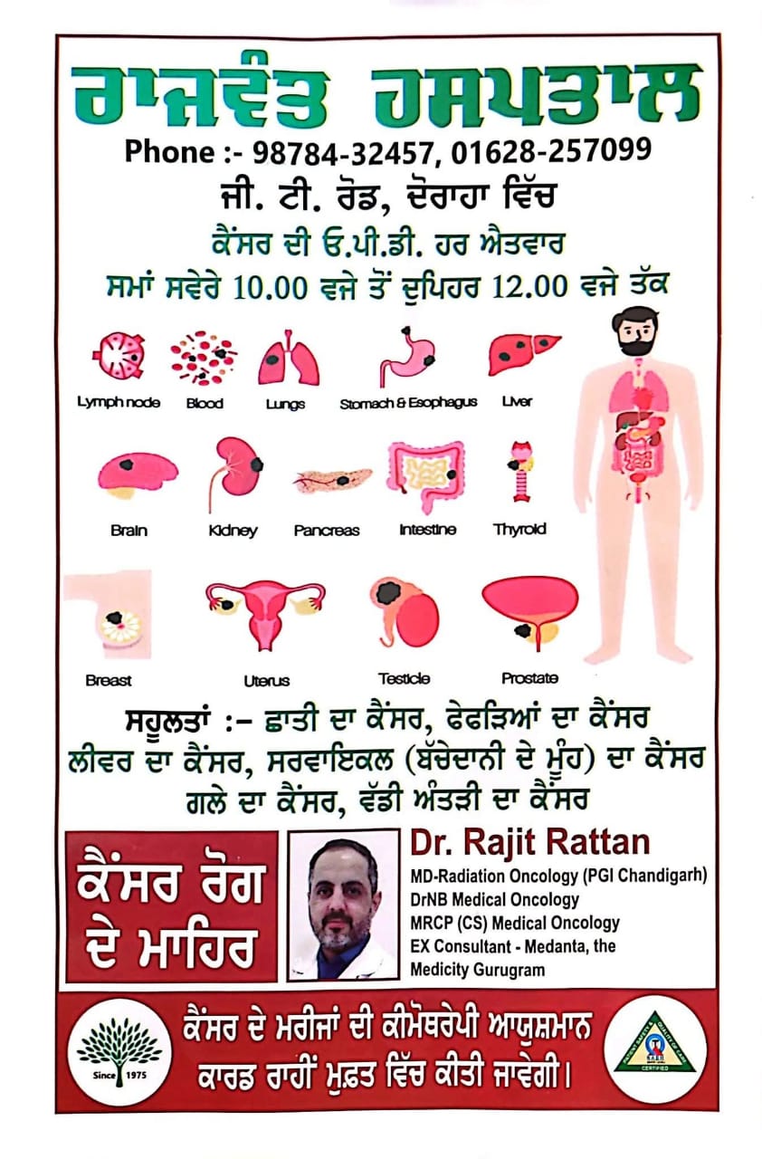 Rajwant Hospital is a Multispeciality Hospital situated in Doraha (Ludhiana). The hospital is providing best services and facilities.